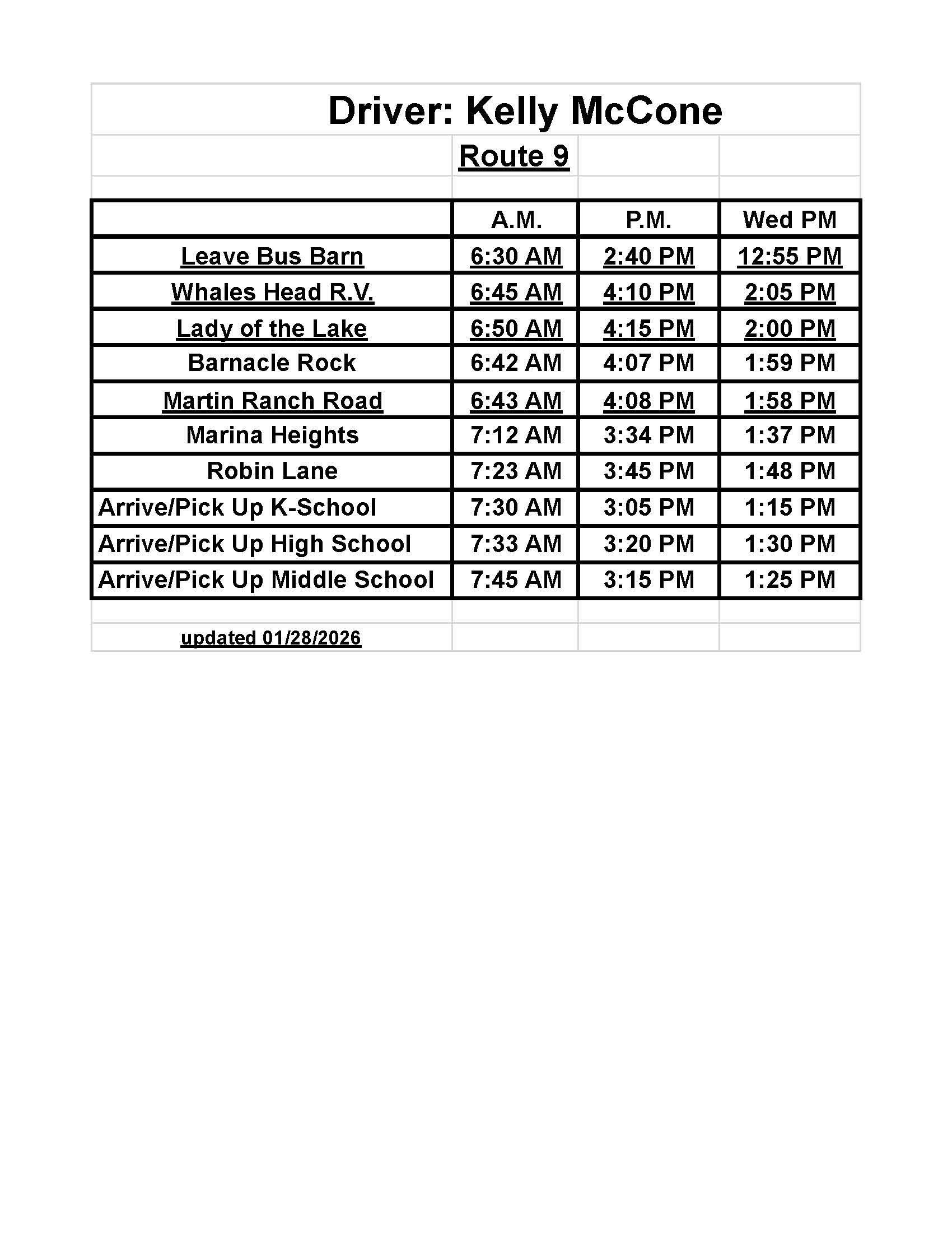 - Route A: Pick up for Cape Ferrelo area students will be at the base of Cape Ferelo road, just before the intersection with Highway 101.